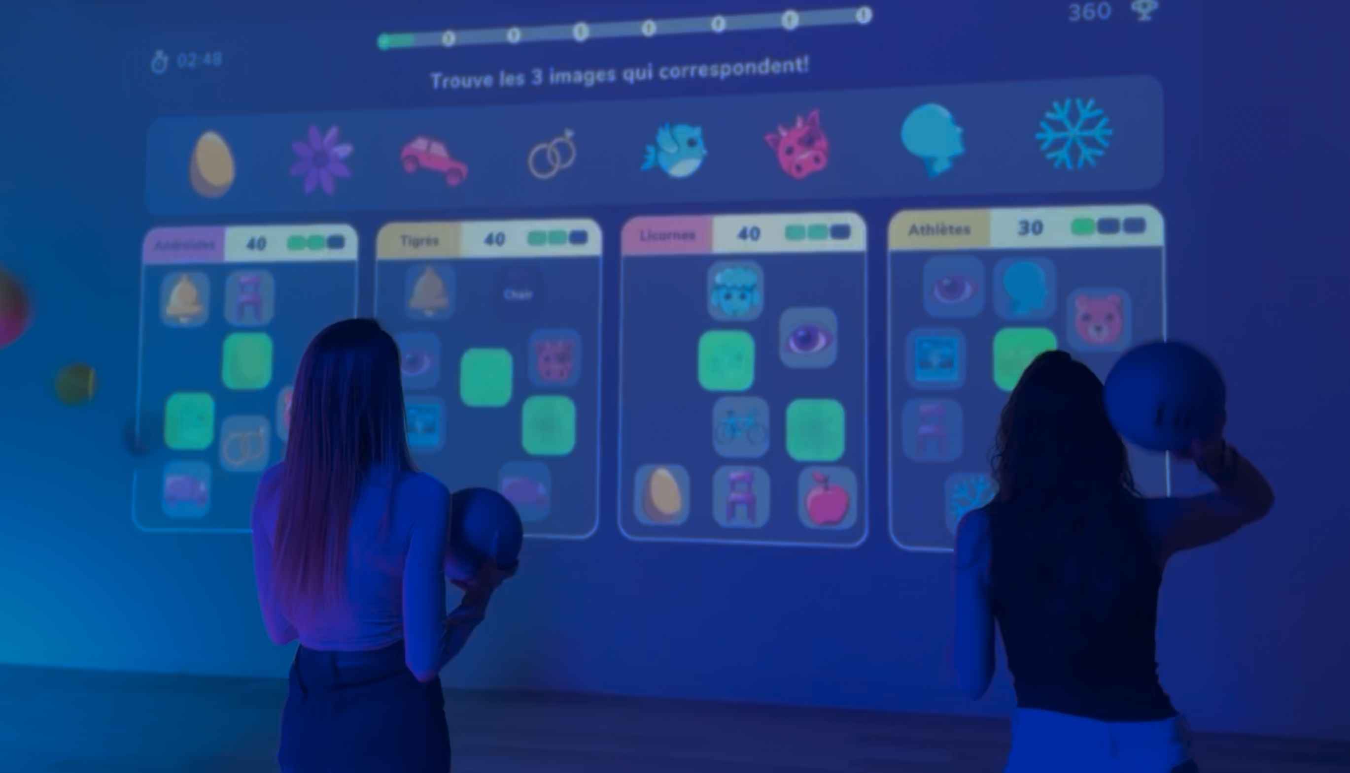 En équipe, les joueurs interagissent avec un mur digital pour relever des défis variés : précision, rapidité, coordination… le tout dans une ambiance fun et accessible à tous.